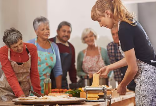 Today we will experience the local cuisine during a cooking class! Learning the secrets of Italian cuisine in a local home offers a wonderful insight into Italy's authentic culture. What could be a better souvenir than culinary skills that last a lifetime? During your lesson, you'll learn how to prepare pasta and the famous tiramisu from scratch and discover the secrets of regional Italian cuisine. After the class, enjoy the fruits of your labor, accompanied by local wines. Cooking and dining with your local chef gives you the chance to be welcomed like one of the family and immerse yourself in the traditions of everyday Italian life.